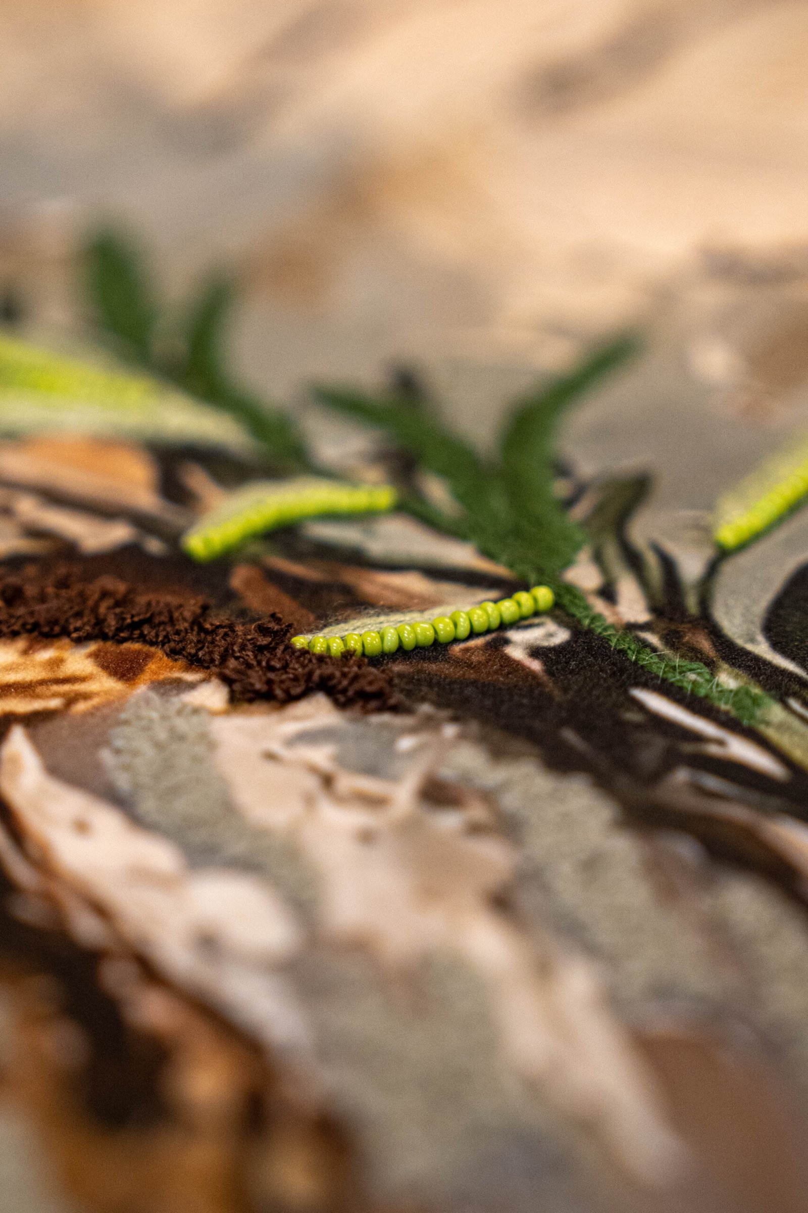 The embroidered accents bring depth and a unique tactile feel, making this piece a standout addition to any kitchen, dining area, or living space. The neutral tones and subtle golden highlights create a timeless look that complements both modern and rustic decor styles. Bring home this elegant blend of art and craftsmanship and elevate your home decor with a touch of rustic simplicity.Material-